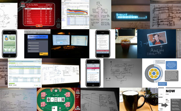 I do a lot of design work on sketch paper (lines get in my way) but having a whiteboard in my office gives me the power to let my imagination run wild. I just take a picture with my phone and share it with my team.